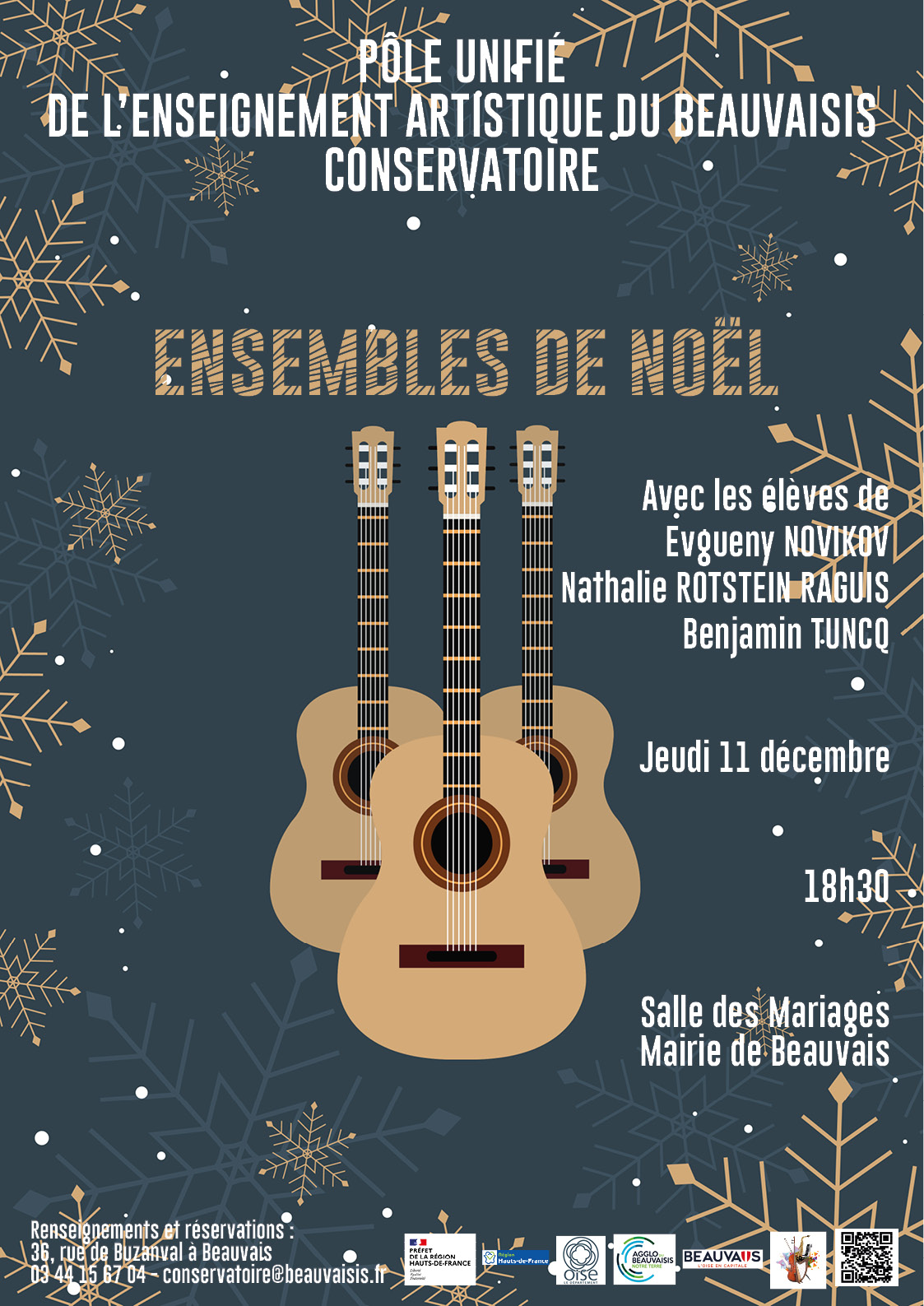 Le pôle unifié de l'enseignement artistique du Beauvaisis vous invite à son concert "Ensembles de Noël", le jeudi 11 décembre 2025 à 18h30, dans la salle des mariages de la mairie de Beauvais.