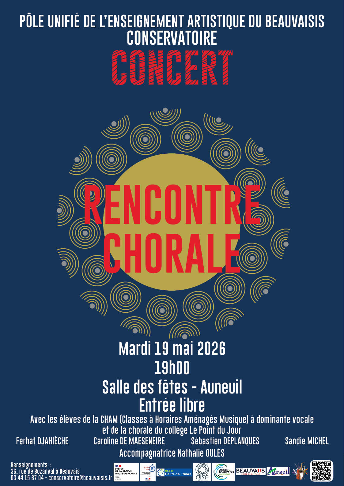 Vivez un moment musical unique, un concert qui réunira les élèves de classe à horaires aménagées musique à dominante vocale de Ferhat DJAHIECHE, ainsi que les élèves de Sébastien DEPLANQUES (professeur d’éducation musicale et chant choral au collège), Caroline DE MAESENEIRE et Sandie MICHEL (professeure des écoles). Une soirée sous le signe du chant et de la découverte.